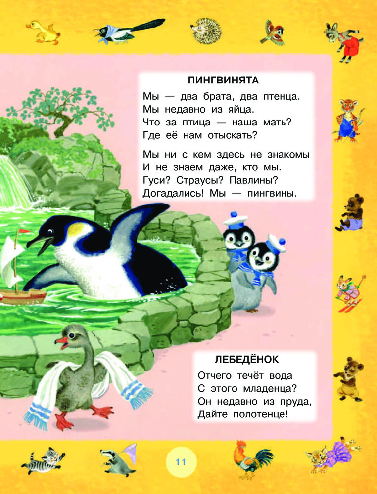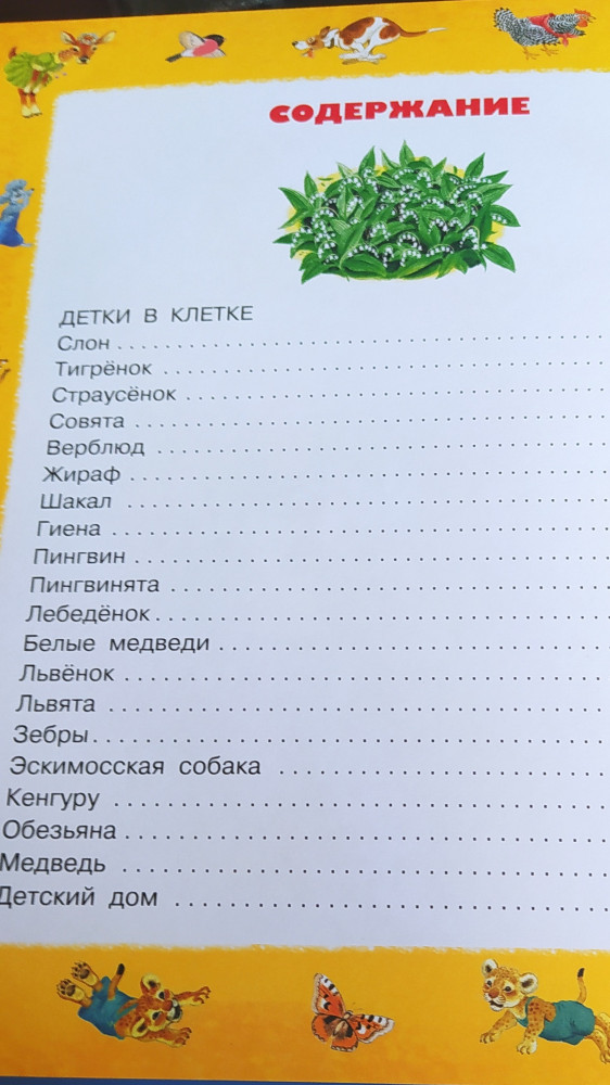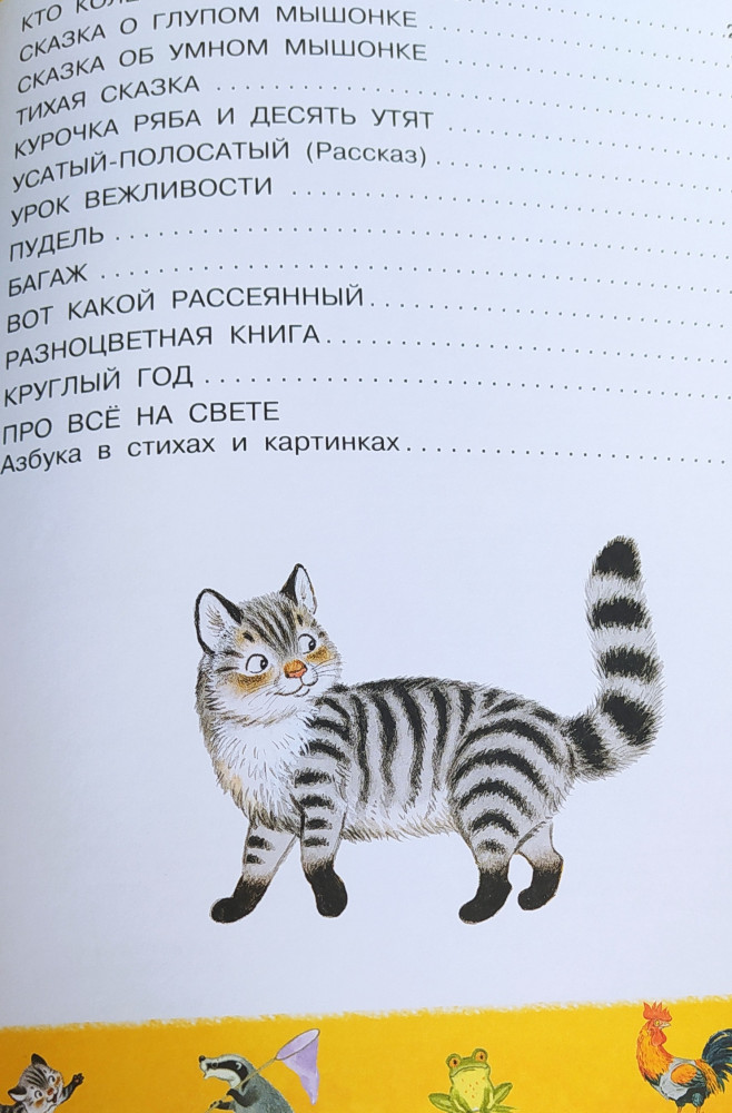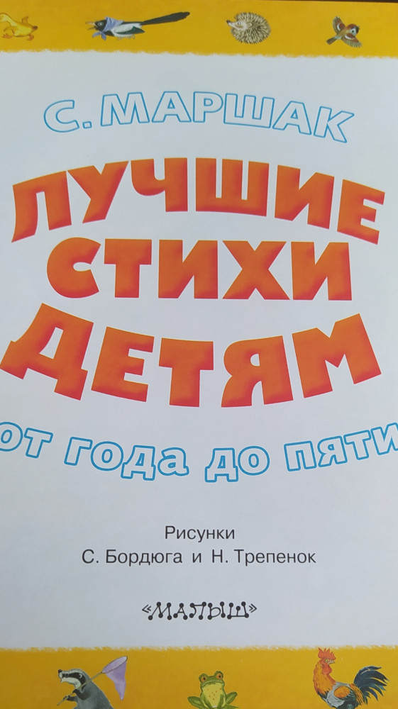 Серия: От года до пяти В книге стихи, сказки в стихах, весёлая стихотворная азбука и рассказ «Усатый-полосатый» С. Маршака. Для совсем маленьких — цикл стихов «Детки в клетке», «Кто колечко найдёт?», «Сказка о глупом мышонке», «Сказка об умном мышонке», «Тихая сказка», «Курочка ряба и десять утят». |