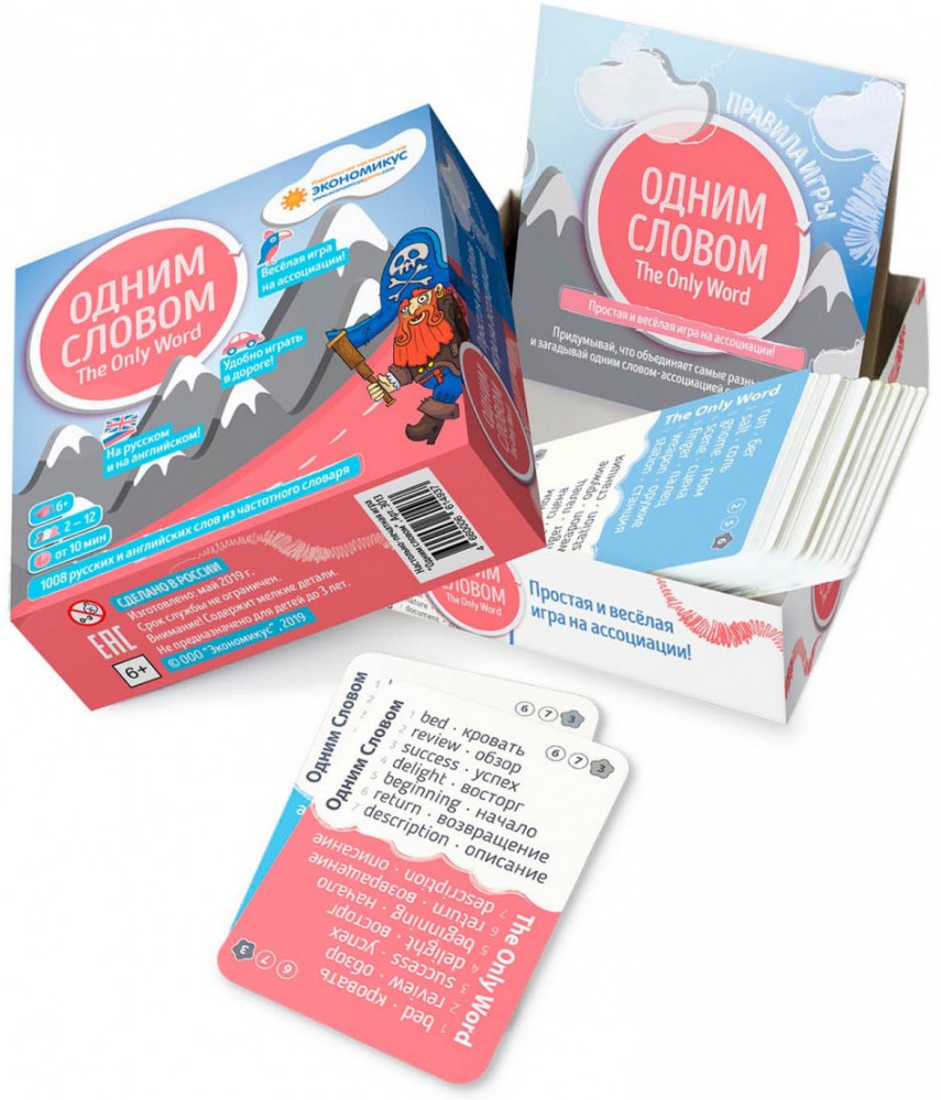 Из семи слов на карточке вам достаются два. Их надо объединить словом-ассоциацией, чтобы остальные игроки угадали нужные слова. Что может объединить пирата и зиму? Санта-Клаус! А кота и ребёнка? Инстаграм! А интригу и собственность? Наследство! За удачные ассоциации вы сбрасываете карточки. И если сбросите все — победите. Заодно пополните словарный запас на английском — игра двуязычная.