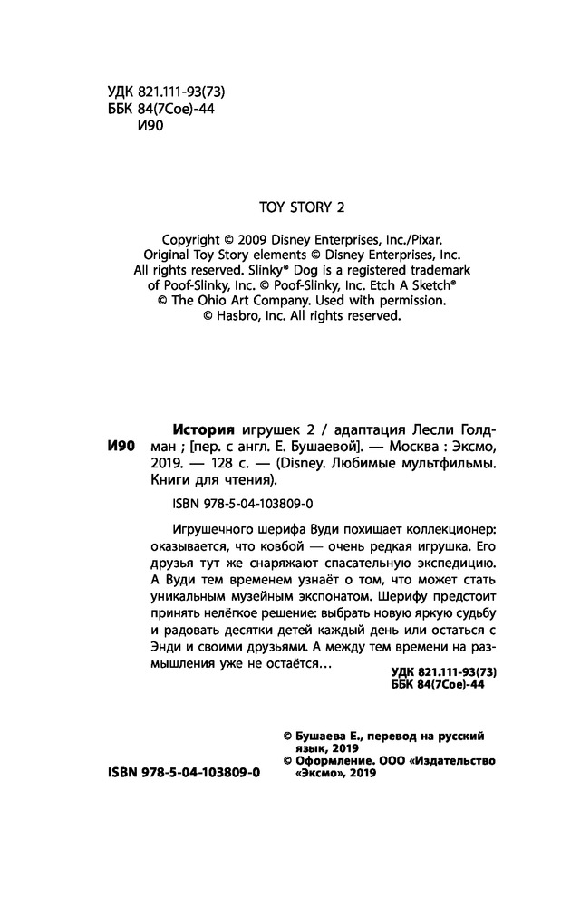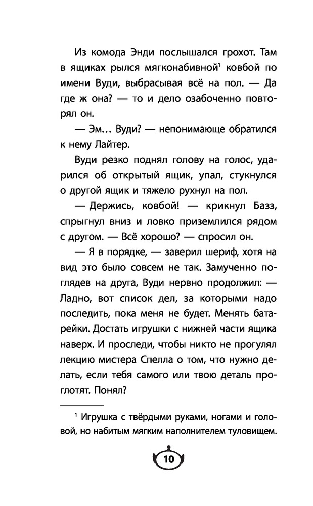 Серия: Детская. Disney. Любимые мультфильмы. Книги для чтения Игрушечного шерифа Вуди похищает коллекционер: оказывается, что ковбой — очень редкая игрушка. Его друзья тут же снаряжают спасательную экспедицию. А Вуди тем временем узнаёт о том, что может стать уникальным музейным экспонатом. Шерифу предстоит принять нелёгкое решение: выбрать новую яркую судьбу и радовать десятки детей каждый день или остаться с Энди и своими друзьями. А между тем времени на размышления уже не остаётся... |