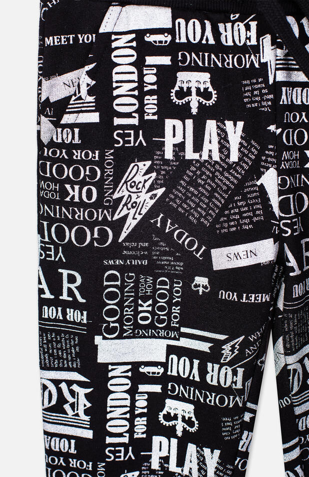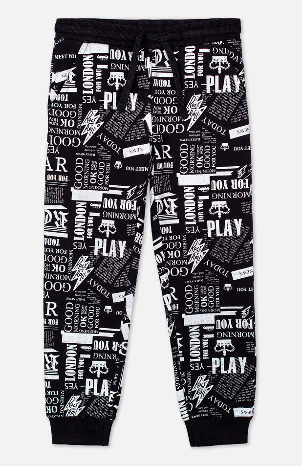 Брюки отличного качества. Черные с серебристым рисунком. Плотные на лето будет жарко, если только в прохладную погоду. Мне и сыну понравились.