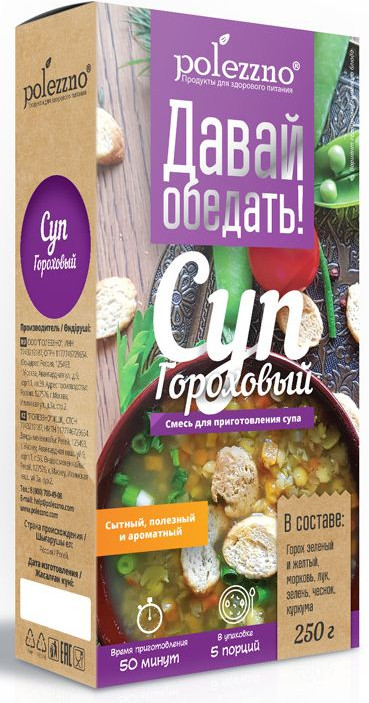 Polezzno Суп гороховыйВ данный момент этот товар отсутствует в продаже. Возможно, у нас найдется аналогичный или похожий товар здесь. Ароматный гороховый супчик Polezzno, который так легко сварить! Блюдо получается очень сытным, с теплым ароматом куркумы, зелени и овощей. Такой суп понравится как взрослым, так и детям. Одна коробочка рассчитана примерно на 2,5 литра воды. Значит, у вас получится порция на 5 тарелок супа! |