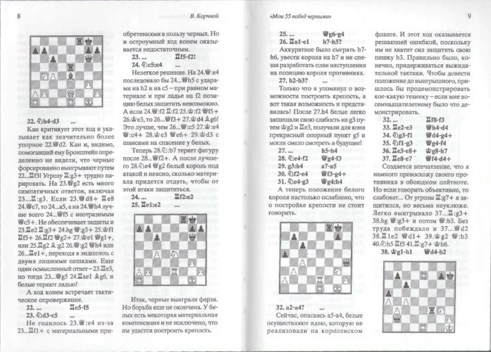 Мои 55 побед чёрнымиВ данный момент этот товар отсутствует в продаже. Возможно, у нас найдется аналогичный или похожий товар здесь. Серия: Великие шахматисты мира Для Виктора Корчного, главного «злодея» современных шахмат, игра и жизнь неотделимы друг от друга. За доской и вне ее прославленный шахматист, многолетний претендент на корону не признает компромиссов и всегда остается искренним в своих оценках и шахматных вариантов и людей. Читателю предоставляется уникальная возможность заглянуть в домашнюю лабораторию выдающегося гроссмейстера-аналитика, а также узнать, о чем он думал, во власти каких ярких идей или заблуждений находился во время игры. «Мои 55 побед черными» — вторая часть двухтомника избранных партий В. Корчного. |