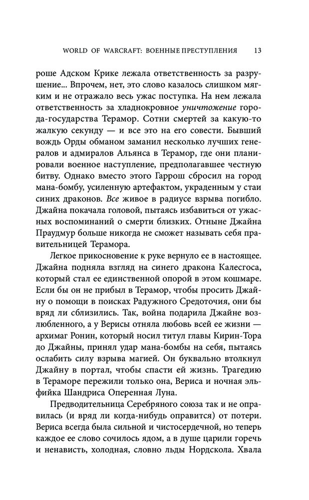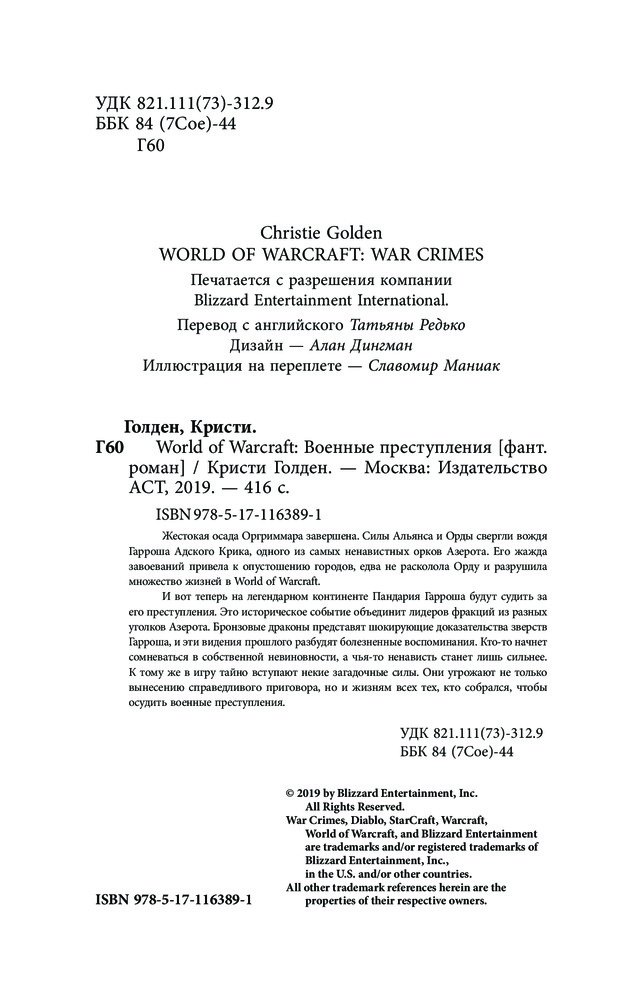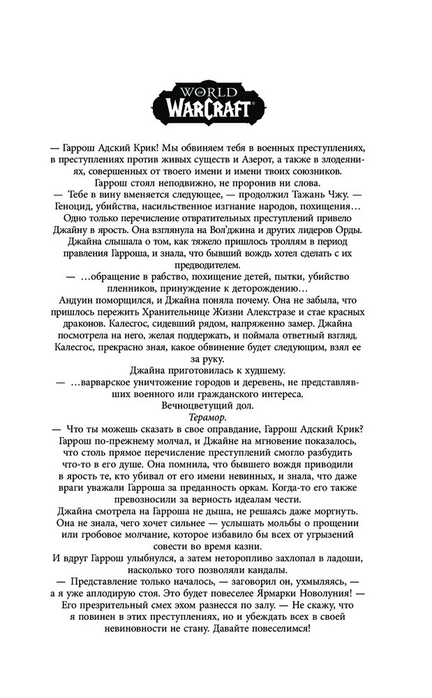 World of Warcraft: Военные преступленияВ данный момент этот товар отсутствует в продаже. Возможно, у нас найдется аналогичный или похожий товар здесь. Серия: Warcraft Жестокая осада Оргриммара завершена. Силы Альянса и Орды свергли вождя Гарроша Адского Крика, одного из самых ненавистных орков Азерота. Его жажда завоеваний привела к опустошению городов, едва не расколола Орду и разрушила множество жизней в World of Warcraft. И вот теперь на легендарном континенте Пандария Гарроша будут судить за его преступления. Это историческое событие объединит лидеров фракций из разных уголков Азерота. Бронзовые драконы представят шокирующие доказательства зверств Гарроша, и эти видения прошлого разбудят болезненные воспоминания. Кто-то начнет сомневаться в собственной невиновности, а чья-то ненависть станет лишь сильнее. К тому же, в игру тайно вступают некие загадочные силы. Они угрожают не только вынесению справедливого приговора, но и жизням всех тех, кто собрался, чтобы осудить военные преступления. |