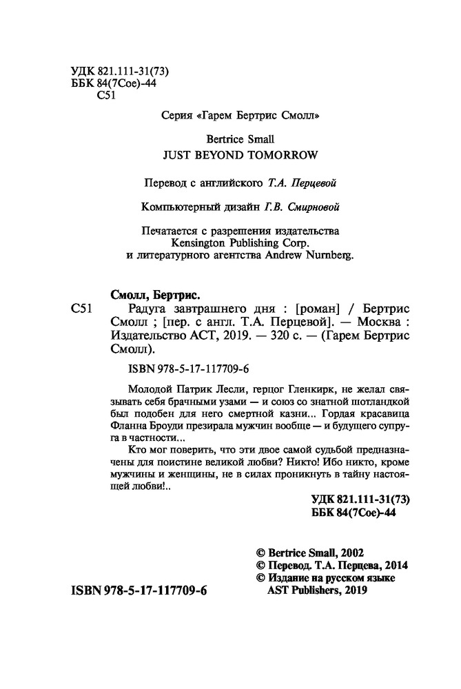 В данный момент этот товар отсутствует в продаже. Возможно, у нас найдется аналогичный или похожий товар здесь. Серия: Гарем Бертрис Смолл (м) Молодой Патрик Лесли, герцог Гленкирк, не желал связывать себя брачными узами — и союз со знатной шотландкой был подобен для него смертной казни... Гордая красавица Фланна Броуди презирала мужчин вообще — и будущего супруга в частности... Кто мог поверить, что эти двое самой судьбой предназначены для поистине великой любви? Никто! Ибо никто, кроме мужчины и женщины, не в силах проникнуть в тайну настоящей любви!.. |