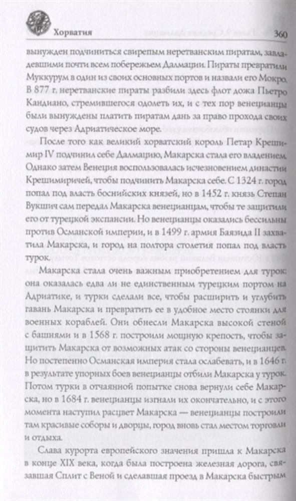 Серия: Исторический путеводитель Хорватия — удивительная страна, в которой есть все: золотые пляжи Далмации и Истрии, высоченные скальные пики и нехоженые горные тропы Велебита и Горски Котара, удивительные Плитвицкие озера, в которых отражается цвет неба, древнеримский амфитеатр в Пуле и дворец императора Диоклетиана в Сплите, заложенные римлянами виноградники, соборы Загреба и крепостные стены Дубровника. Есть даже своя «маленькая Вена» — прелестный Вараждин. |