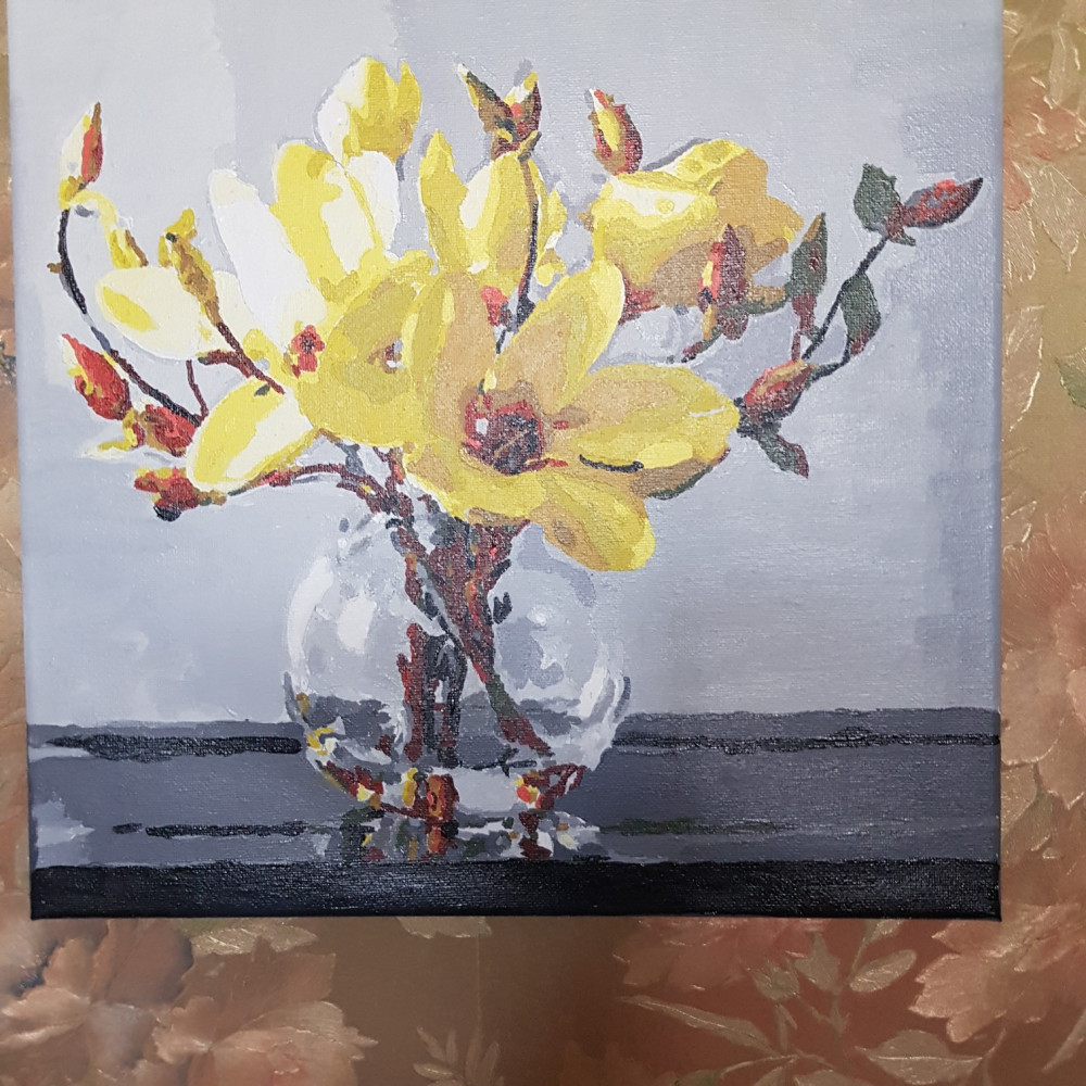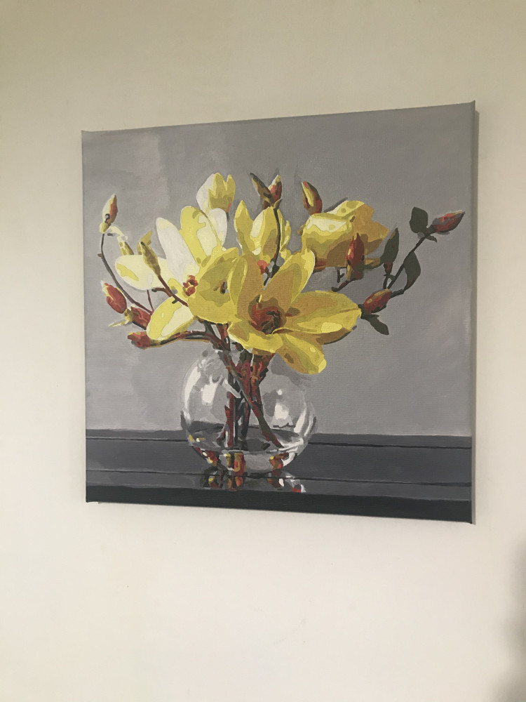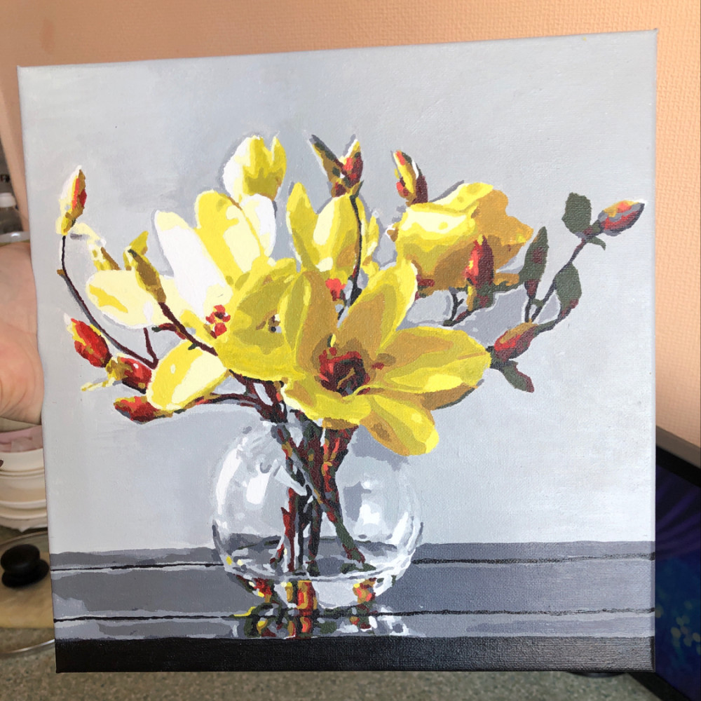Прекрасная картина, и размер, и цветовая гамма, и итог, очень нравится, магнолии шикарные.