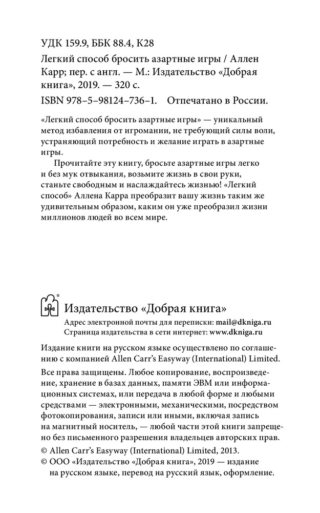 | Легкий способ бросить азартные игры Аллен Карр +210 (бонусов)