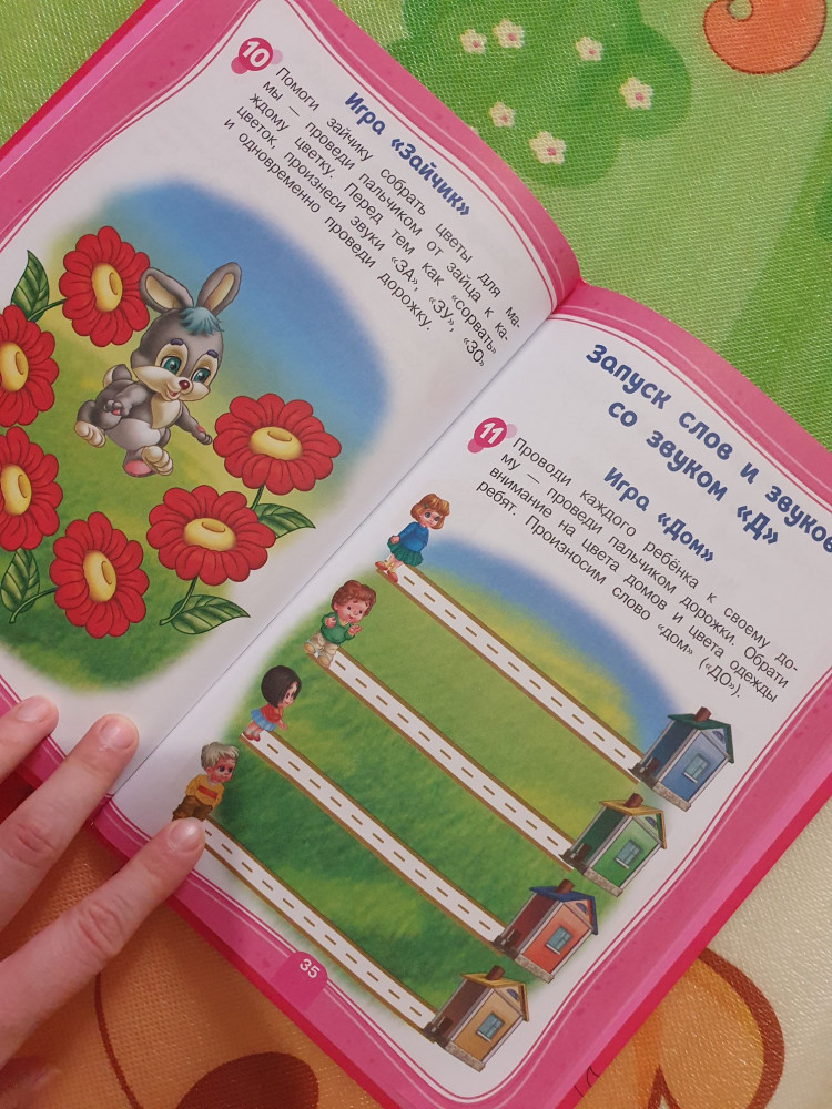 Яркая и красивая книжка, но на возраст одного года действительно рассчитаны только упражнения базовые. То что идёт дальше 5 страницы уже на возраст 2-3 лет. После каждого раздела есть памятка для родителей. Полезная и информативная книга.