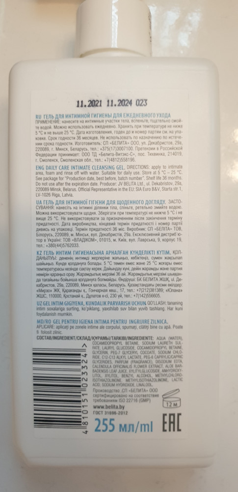 Bielita Гель для интимной гигиены-25% +47 ощущения увлажняет запах
