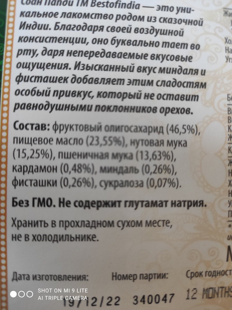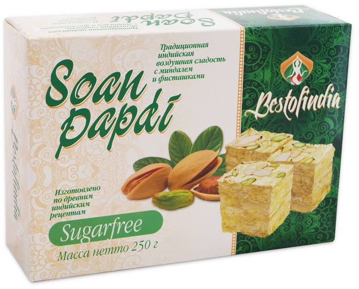 Всё тот же вкус традиционного индийского лакомства, но без содержания сахара. Стружка миндаля и фисташек прекрасно дополняют этот воздушный десерт. Попробуйте Соан Папди Без Сахара и насладитесь новым вкусом. Стружка миндаля и фисташек прекрасно дополняют этот воздушный десерт. Попробуйте Соан Папди Премиум и окунитесь в новый мир вкусов. Соан Папди, также известный как Соан Халва (Soan Halwa) или Патиса (Patisa) — это классический слоёный десерт, который можно увидеть повсеместно в Индии и других странах. Он имеет сходства с обычной халвой, но всё же отличается своим вкусом и консистенцией. |