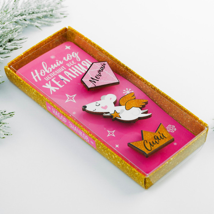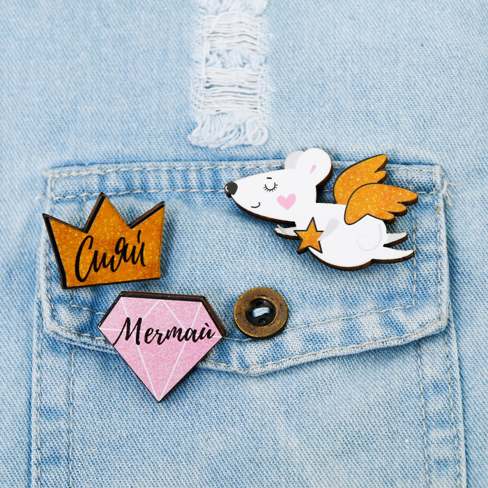 Ни один стиляга не будет выглядеть современно без искусно подобранных украшений, которые завершат его образ! Бижутерия — это современная недорогая альтернатива изделиям из золота и прочих драгоценных металлов. Набор значков «Мечтай», в коробке, 3 шт. — это то, что добавит вам шарма! |