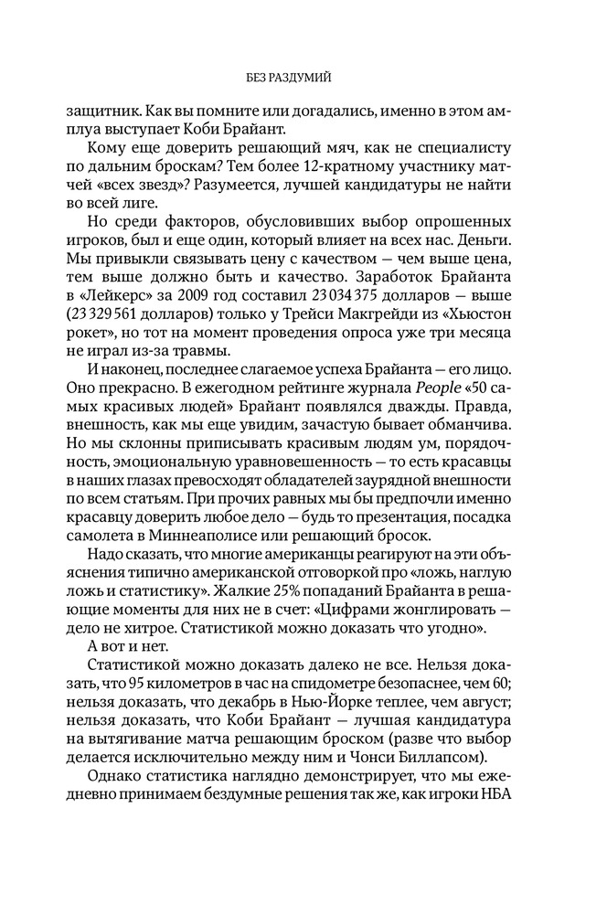 Серия: Бизнес О нас и о том, что движет нашим неосознанным выбором. Как правило, решение о покупке мы принимаем на уровне ощущений, иногда за считанные секунды, а потом логически подгоняем обоснование под принятое решение. Часто даже дорогие вещи мы покупаем, руководствуясь эмоциями, а не трезвым расчетом. Отвечая на множество неожиданных вопросов, книга помогает понять, как мастера маркетинга умело управляют нашим выбором. |