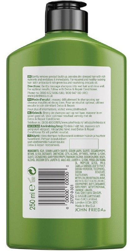 John Frieda Шампунь для очищения и восстановления волосВ данный момент этот товар отсутствует в продаже. Возможно, у нас найдется аналогичный или похожий товар здесь. Серия: Detox & Repair Шампунь мягко, но эффективно очищает волосы от различных загрязнений. Сочетание насыщенного антиоксидантами зеленого чая с питательным маслом авокадо напитывает сухие, ослабленные волосы,обеспечивает глубокое питание и моментально оживляет их, восстанавливая и возвращая здоровый внешний вид. Коллекция специального ухода за волосами Detox&repair от John frieda легко освобождает ваши волосы от нежелательных загрязнений и создает идеальную основу для заметного восстановления волос, мгновенно возвращает им жизненную силу. Detox&repair преображает сухие и ослабленные волосы, становится для них источником гладкости и блеска, красоты и здорового внешнего вида. Возвращает к жизни сухие и тусклые волосы. Деликатно очищает и глубоко питает. |