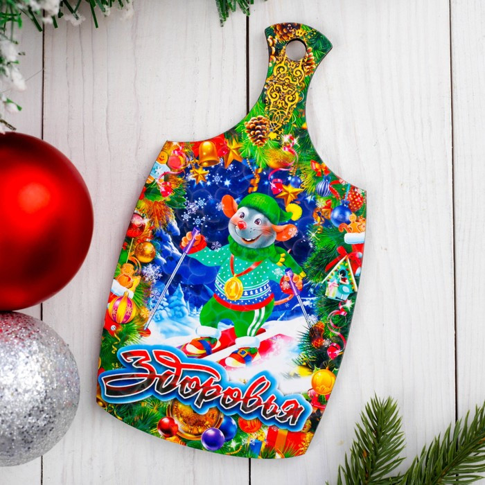 Доска разделочная «Здоровья! Мышонок на лыжах»
