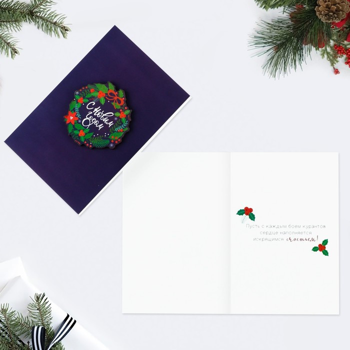 Дарите Счастье Открытка с деревянным элементом «С Новым годом!»-25% +3