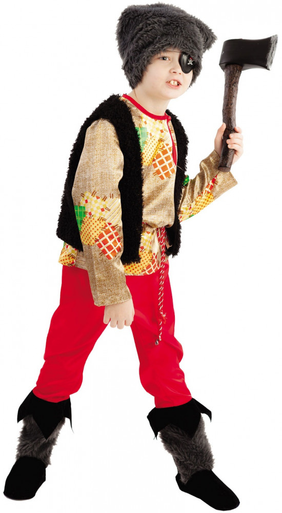 Русская народная сказка немыслима без отрицательных персонажей. Разбойник — один из них, но это не значит, что его образ не должен нравиться детям. Даже наоборот, какому мальчишке не захочется почувствовать себя лихим сказочным разбойником, который живет в лесу и никого не слушает? Карнавальный костюм идеально подойдет для спектаклей, утренников и карнавальных торжеств. Этот образ, тщательно продуманный дизайнерами бренда Пуговка, выглядит реалистично и довольно устрашающе.