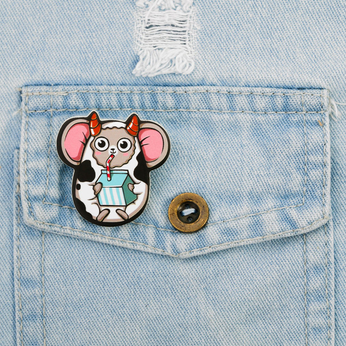 Значок брала для дочки, тельца-крысы по гороскопу. Понравился, как на фото, лёгкий, прикольный. Единственный минус - края как-то плохо обработаны, негладкие.