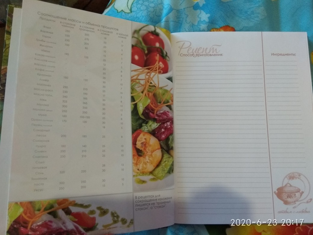 Hatber Книга для записи кулинарных рецептов «Кулинарный винтаж»В данный момент этот товар отсутствует в продаже. Возможно, у нас найдется аналогичный или похожий товар здесь. Книга для записи кулинарных рецептов поможет хозяйкам составить поваренную энциклопедию своей семьи, в которой можно хранить весь кулинарный опыт, заполняя страницы фирменными рецептами. Книга содержит полезную информацию о мере и массе продуктов, основные правила сервировки стола и этикета приема пищи. |
