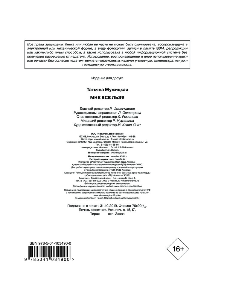💳 Оплатить за товар можно при получении 🇰🇿 Есть бесплатная доставка по Казахстану 🎁 Копите бонусы с каждой покупки Серия: Искры вдохновения. Книги, которые исполняют желания Найти дело жизни, реализовать свой потенциал и заработать денег — согласитесь, хороший план. Только почему-то неосуществимый для большинства из нас. Известный психолог и бизнес-тренер Татьяна Мужицкая утверждает: порой причины, по которым мы не можем найти себя, — бессознательные самозапреты. Эта книга помогает избавиться от внутренних ограничителей и наконец-то вычислить тот вид занятий, который вам по-настоящему подходит. И речь не о хобби. Речь о деле жизни, которое будет вас кормить, вдохновлять и делать абсолютно счастливым человеком. |