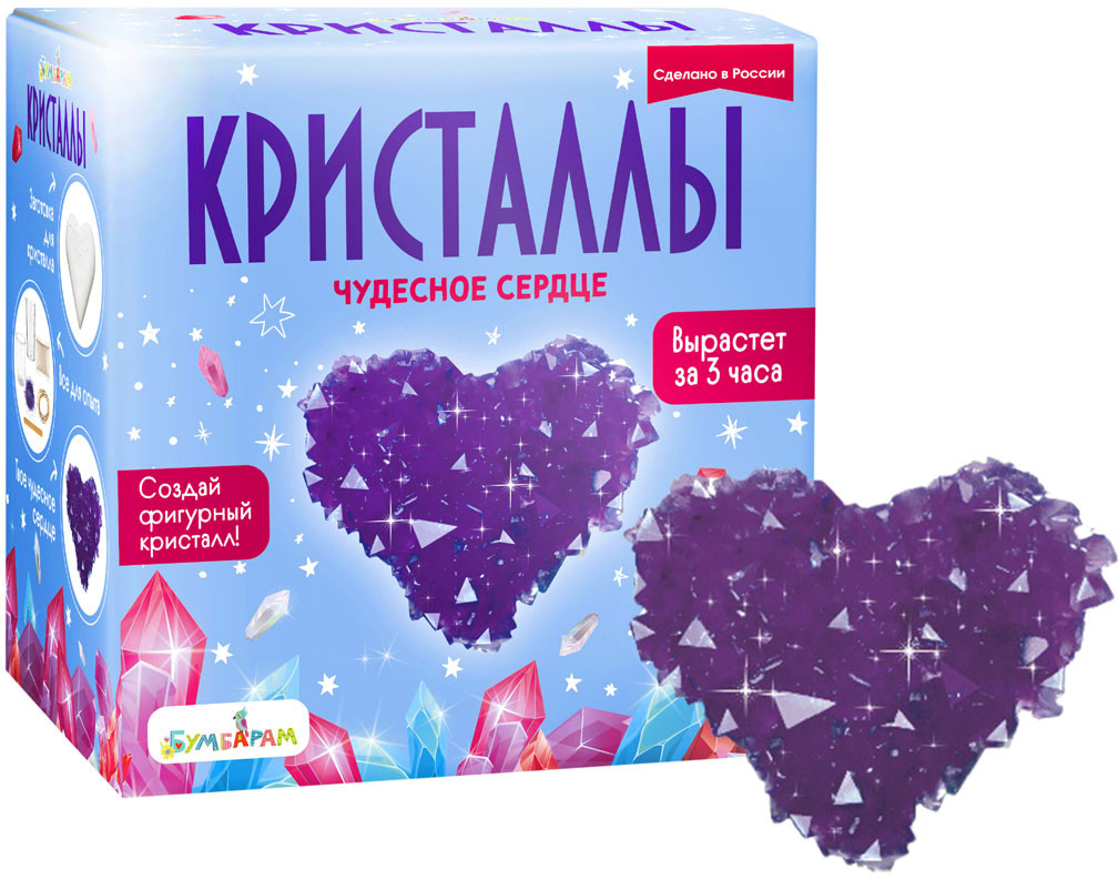 Выращивание кристаллов — это отличная возможность не только понаблюдать за чудесами окружающего мира, но и сотворить их самому! С набором «Кристаллы:Чудесное сердце» вы сможете изготовить сияющий фигурный кристалл в форме розового сердца. Кристальная фигурка станет как отличным украшением для комнаты, так и необычным подарком. В заготовке есть специальное отверстие, поэтому готовым кристаллом можно будет украсить комнату или повесить его на елку.