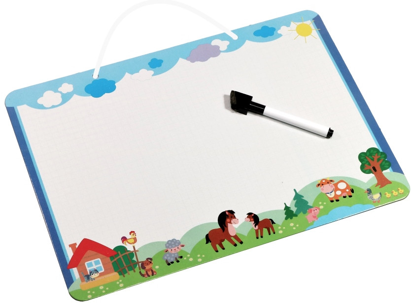 Развивайте творческие способности ребенка, рисуя маркером или мелом на поверхности планшета, или изучайте алфавит и цифры, составляя простые слова и математические примеры. Стирайте написанное мелом или маркером — и используйте планшет снова. Доска имеет удобную петельку для подвешивания.