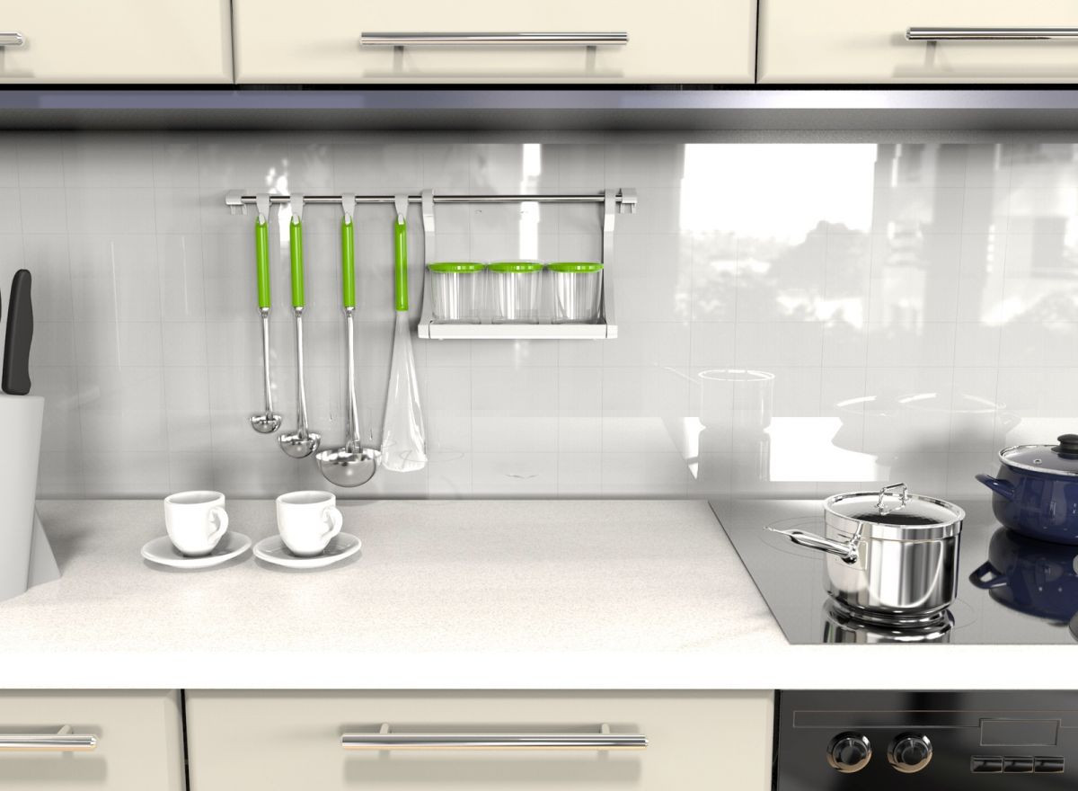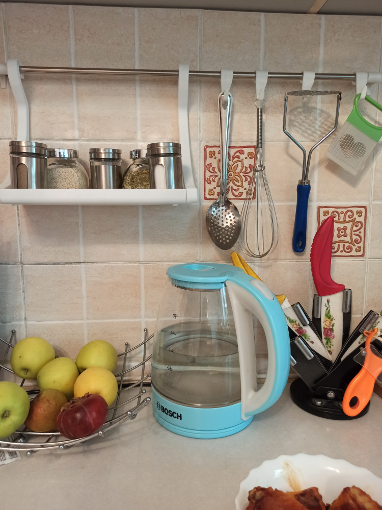 Очень хороший рейлинг, хороший размер полочки, поставила соль и перец недалеко от плиты, удобно.