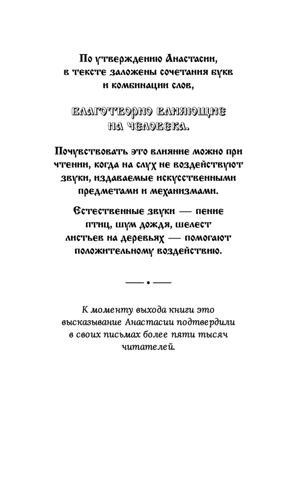 Анастасия. Энергия твоего родаВ данный момент этот товар отсутствует в продаже. Возможно, у нас найдется аналогичный или похожий товар здесь. Серия: Звенящие кедры России Два человека, представители двух разных земных цивилизаций, встретились на безлюдном берегу сибирской реки Обь. Она — представительница древнейшего рода, молодая отшельница сибирской тайги, а он — современный предприниматель, который высмеивал ее образ жизни, философские умозаключения и предсказания. |