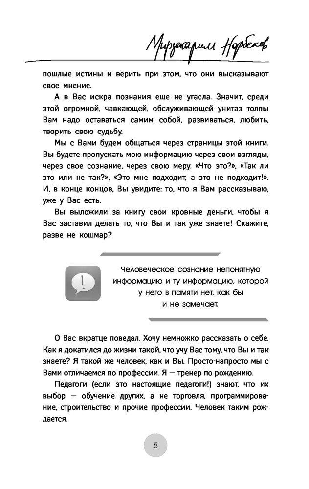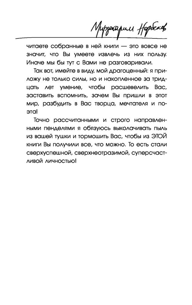 Очень нравится как пишет М. Норбеков, заказала сразу 3 его книги. Книги заказала по акции 3+1. Спасибо большое флипу за возможность приобретения книг! Спасибо большое сотрудникам за быстрое обслуживание!