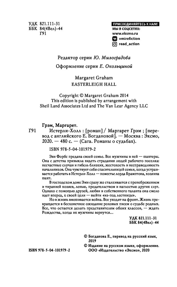 "Истерли Холл" М. Грэм - отличный красивый прочный переплёт, белые тонкие страницы, шрифт чёткий. Содержание хорошо отражено в рекламном описании книги, поэтому повторяться не буду. Стиль написания написан увлекательно, читается "взахлёб". Отмечу только, что это 1-том трёхтомника. "Второй том "Война. Истерли Холл". Третий том "Раскол дома. Истерли Холл". Все три книги куплены во Флипе, спасибо за такой трехтомник! Великолепные все три тома, я в восторге! Хочется продолжения. Не обещаны писателем, но вдруг... Не пропустить бы. Супер!!!
