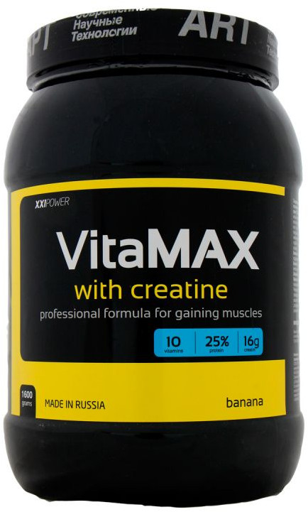 «VitaMAX» — это новый комплексный продукт серии XXI — Power. Основа — молочные и соевые концентраты, дающие тренирующемуся атлету необходимый белок. Соевый белок — прекрасный антикатаболик, а молочный — усиливает анаболические процессы, в сочетании они действуют подобно «взрыву». Плюс мощная витаминеральная формула.