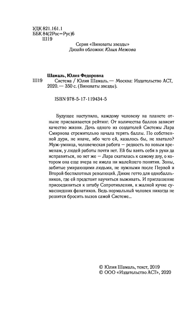 Серия: Виноваты звезды (КИНО!!) Будущее наступило, каждому человеку на планете отныне присваивается рейтинг. От количества баллов зависит качество жизни. Дочь одного из создателей Системы Лара Смирнова стремительно начала терять баллы. По собственной дури, не иначе, ибо чего ей, казалось бы, не хватало? Муж-умница, человеческая работа — редкость по новым временам, у людей работы почти нет. Ей бы взять себя в руки да исправиться, но нет же — Лара скатилась к самому дну, о котором она еще вчера не имела ни малейшего понятия. Зоны, забитые умирающими людьми, не нужными после Первой и Второй беспилотных революций. Дикие гетто для однобалльников, где ей предстоит научиться выживать. И приглашение присоединиться к штабу Сопротивления, к жалкой кучке сумасшедших фанатиков. Ведь нормальный человек никогда не решится бросить вызов самой Системе... |