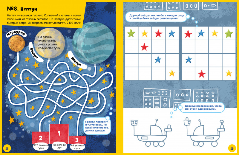Отличная книга-развивашка для любителей космоса! Задания разнообразные и интересные.