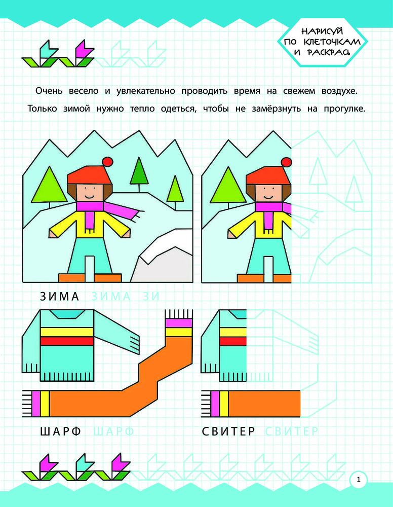 Серия: Клетка за клеткой Добро пожаловать в мир весёлых клеточек! В этой раскраске собраны замечательные, красочные картинки, которые ты сможешь без труда скопировать! И в этом тебе помогут клеточки. Посчитай их, проведи линию, раскрась — и вот, ты уже настоящий художник! И не забудь скопировать по клеточкам слова! Это отличная тренировка для руки! Куда бы отправиться, если наскучило сидеть дома? В этой книжке мы собрали картинки, которые подадут тебе отличные идеи, а также сопроводили их занимательными простыми текстами. Не теряй времени! Скорее открывай нашу весёлую раскраску! |