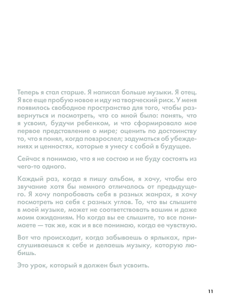 Серия: Биография. Музыка (подарочная) Джастин рассказывает о разных аспектах своего детства, включая рано проявившуюся любовь к музыке и конкретным исполнителям, повлиявших на создание его собственных песен и альбомов. Он рассуждает о процессе написания песен, раскрывая для читателя историю создания многих своих хитов. Размышляет о сотрудничестве с другими артистами и режиссёрами, углубляясь в детали создания своих шоу, скетчей на телевидении и фильмов. Кроме того, он осмысливает собственную идентичность, выясняя, что именно его вдохновляет, откровенно рассказывает об отцовстве, семье, близких друзьях и преградах на творческом пути, а также о поиске внутренней гармонии и силы. |