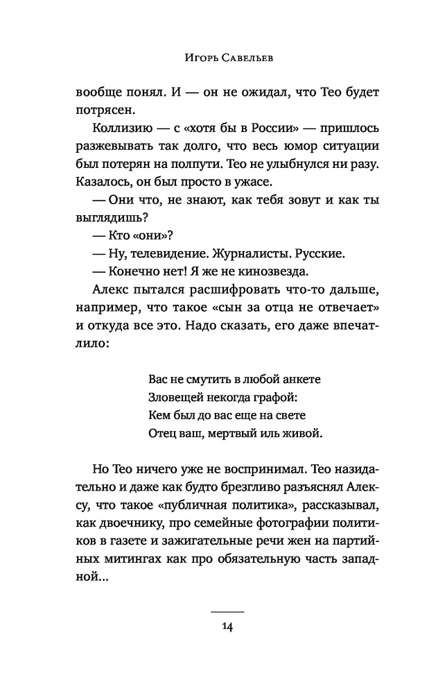 Серия: Актуальный роман Игорь Савельев — журналист, прозаик. Автор романов «Терешкова летит на Марс», «Zевс». Удостоен премии «Лицей»-2018 за остросоциальную повесть «Ложь Гамлета» «про поколение «хипстеров-коллаборационистов»» (Лев Данилкин). |