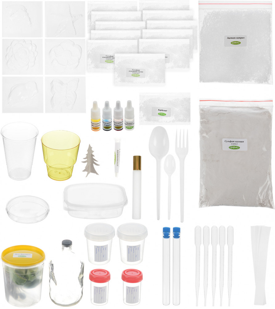 Наборы формата "сделай сам" для самостоятельного проведения интересных и несложных опытов. В ходе экспериментов жидкости будут превращатсья в кристаллы и наоборот. Изучайте как воздействие обычной воды удивительным образом увеличивает объем вещества в несколько раз.