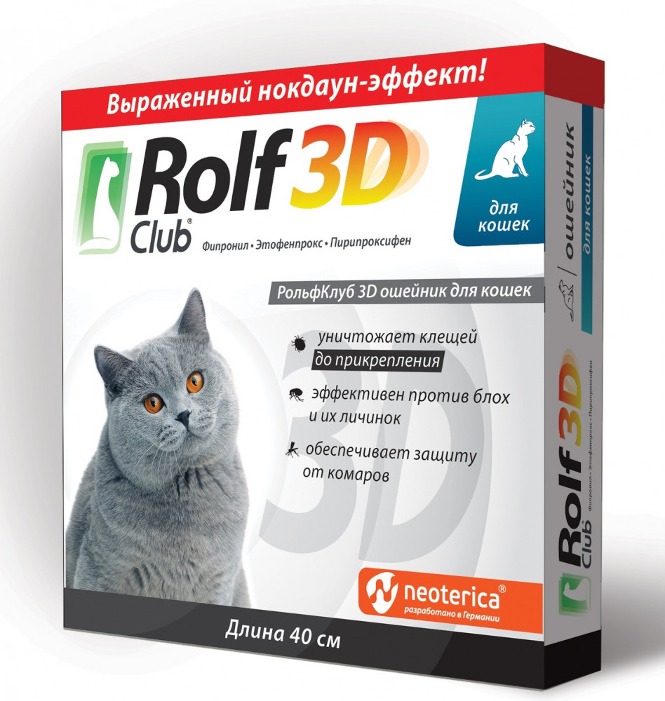 RolfClub 3D Ошейник для кошек от блох, клещей, насекомых-20% +92 защита от клещей долговечность не рекомендую