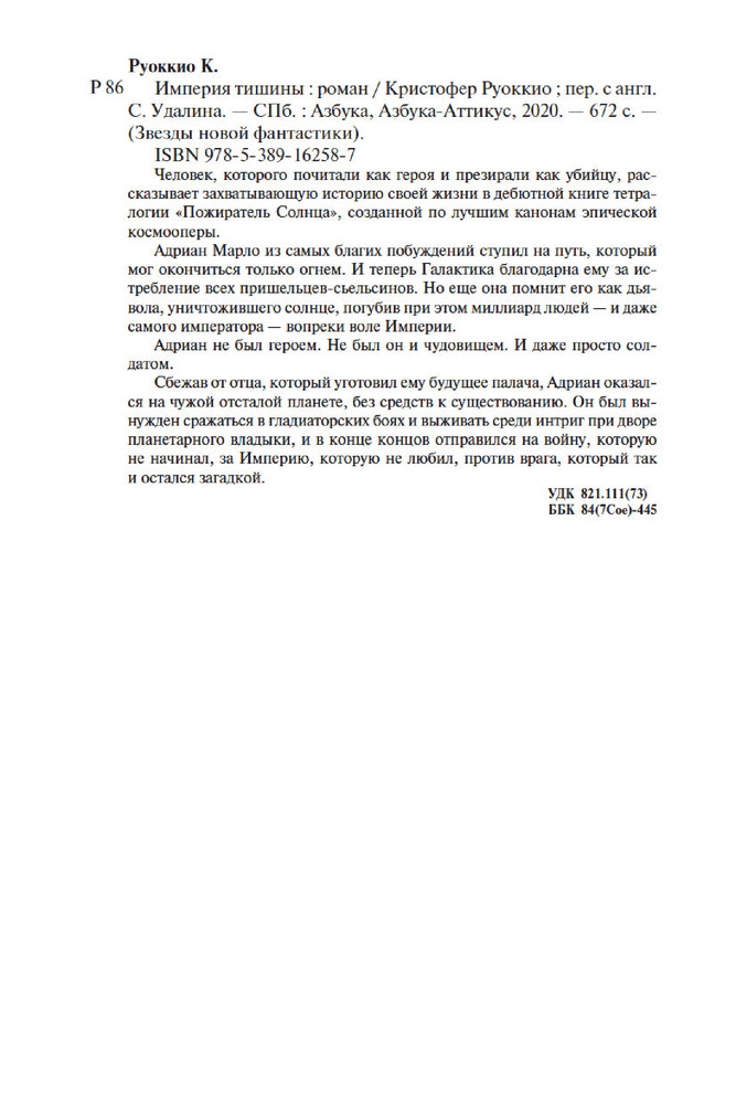 Серия: Звезды новой фантастики Человек, которого почитали как героя и презирали как убийцу, рассказывает захватывающую историю своей жизни в дебютной книге тетралогии «Пожиратель Солнца», созданной по лучшим канонам эпической космооперы. |