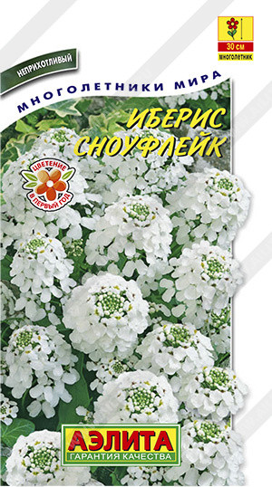 Аэлита Иберис «Сноуфлейк»В данный момент этот товар отсутствует в продаже. Возможно, у нас найдется аналогичный или похожий товар здесь. Популярный, обильноцветущий сорт неприхотливого многолетнего полукустарникового растения. Образует раскидистые кустики высотой 20-30 см и Ø 35-45 см. Цветки Ø 1-2 см собраны в крупные соцветия, во время цветения почти полностью закрывающие листья. Растения засухоустойчивые, предпочитают солнечное месторасположение но мирятся и с легкой полутенью. Используются в рабатках, бордюрах, на переднем плане цветников и в каменистых садиках. Декоративны в течение всего сезона. |