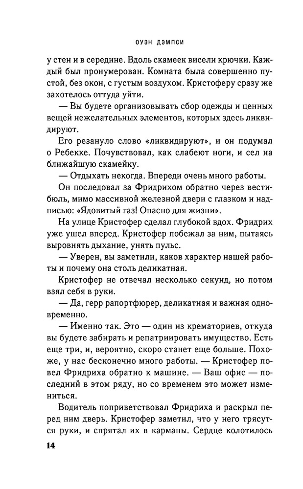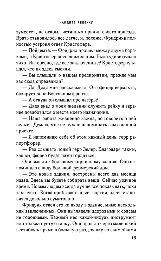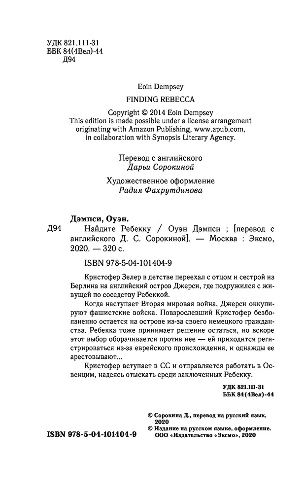 Найдите РебеккуВ данный момент этот товар отсутствует в продаже. Возможно, у нас найдется аналогичный или похожий товар здесь. Серия: Прорыв десятилетия. Проза Оуэна Дэмпси и Аннетте Хесс Кристофер Зелер в детстве переехал с отцом и сестрой из Берлина на английский остров Джерси, где подружился с живущей по соседству Ребеккой. Когда наступает Вторая мировая война, Джерси оккупируют фашистские войска. Повзрослевший Кристофер безбоязненно остается на острове из-за своего немецкого гражданства. Ребекка тоже принимает решение остаться, но вскоре этот выбор оборачивается против нее — ей приходится регистрироваться из-за еврейского происхождения, и однажды ее арестовывают... Кристофер вступает в СС и отправляется работать в Освенцим, надеясь отыскать среди заключенных Ребекку. |