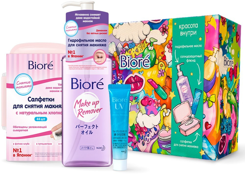 Biore Набор подарочныйВ данный момент этот товар отсутствует в продаже. Возможно, у нас найдется аналогичный или похожий товар здесь. В набор входит: салфетки для снятия макияжа — 44 шт, гидрофильное масло для снятия макияжа — 230 мл, солнцезащитный флюид UV Aqua Rich SPF50 — 15 г. |