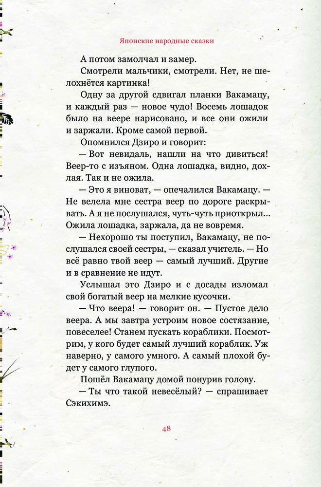 Серия: Отражения Немного наивные и глубоко лиричные японские сказки мудры, как жизнь, и просты, как хокку. В них, словно в зеркале, отражены эстетические и духовные идеалы людей, стремящихся жить в гармонии с окружающим миром. Японцы тонко чувствуют его красоту, поэтому их сказки столь поэтичны. Поэтичность и изысканная утончённость характерны не только для фольклора, но и для изобразительного искусства Японии. Если верно утверждение, что глаза — зеркало души, то картину можно назвать отражением действительности, увиденной и воссозданной художником. Старинные гравюры, вошедшие в книгу, органично дополняют текст. Они дают читателю представление о природе и культуре Страны восходящего солнца, о быте и нравах её жителей, позволяют глубже погрузиться в атмосферу японской сказки. |