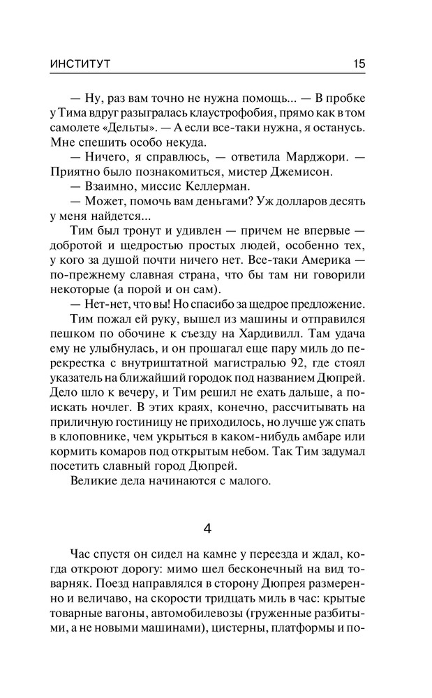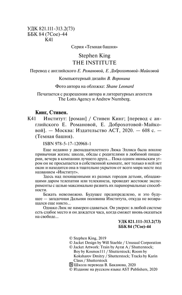 💳 Оплатить за товар можно при получении 🇰🇿 Есть бесплатная доставка по Казахстану 🎁 Копите бонусы с каждой покупки Серия: Темная Башня Еще недавно у двенадцатилетнего Люка Эллиса была вполне привычная жизнь: школа, обеды с родителями в любимой пиццерии, вечера в компании лучшего друга... Пока одним июньским утром он не просыпается в собственной комнате, вот только в ней нет окон и находится она в тщательно укрытом от всего мира месте под названием «Институт». Здесь над похищенными из разных городов детьми, обладающими даром телепатии или телекинеза, проводят жестокие эксперименты с целью максимально развить их паранормальные способности. Бежать невозможно. Будущее предопределено, и это будущее — загадочная Дальняя половина Института, откуда не возвращался еще никто... Однако Люк не намерен сдаваться. Он уверен: в любой системе есть слабое место и он дождется часа, когда сможет вновь оказаться на свободе... |