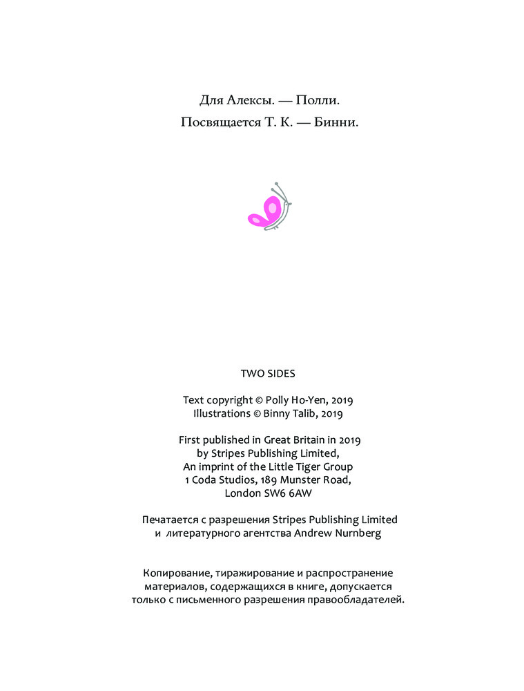 Серия: Любимые книги со всего света Редакция «Вилли Винки» представляет! Лиля и Ленка — лучшие подруги, но при этом они полные противоположности друг другу. Лиля любит собак, а Ленка — кошек. Лиля — невероятная грязнуля, а вот Ленка любит порядок и чистоту. Лиля обожает болтать со всеми вокруг, ну а Ленка предпочитает просто наблюдать за людьми. Но вместе они идеальный дуэт. И так было всегда, пока в один прекрасный день что-то пошло не так... Полли Хо-Йен изучала английскую литературу в Бирменгемском университете. Её первые книги были номинированы на The Carnegie Medal и попали в шорт-лист таких премий, как The Blue Peter Book Award и the Waterstones Children’s Book Prize. «Мирись, мирись, мирись...» — это важная книга о дружбе и о том, насколько важно прислушиваться друг к другу и к себе. |