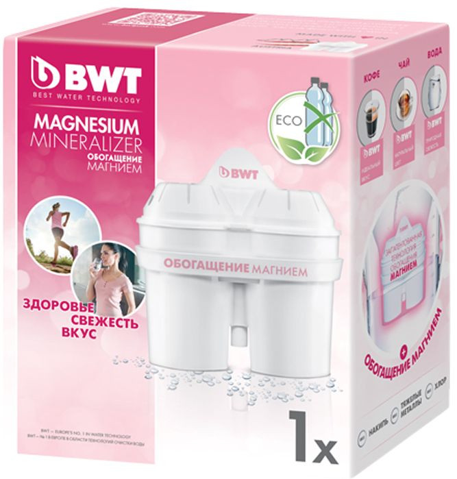 BWT «Обогащение магнием» — единственная кассета европейского качества с запатентованной функцией обогащения воды магнием Mg 2+. Технология BWT очищает воду и оказывает особое влияние на вкусовые качества воды, такая вода имеет уникальный мягкий вкус. Ежедневное потребление магния крайне важно для организма человека.
