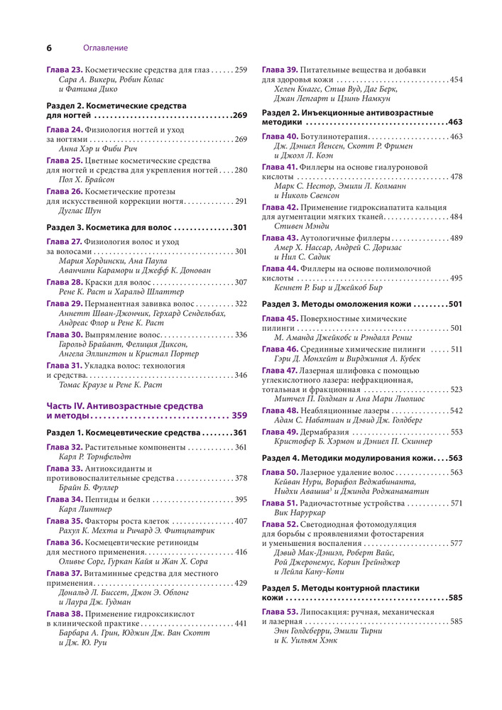 Издание представляет собой справочник по косметической дерматологии и содержит обширную информацию, которая затрагивает значимую часть этой узкой специальности. В нем читатель найдет ответы на вопросы по всем важным темам о здоровье кожи. Представлены основные понятия, описывающие физиологию кожи в контексте косметической дерматологии и то, как препараты, используемые в косметологии, проникают в кожу. В книге также описаны очищающие, увлажняющие средства и средства личной гигиены. Приведены декоративные косметические средства для лица, а также для ногтей и волос. Большое место занимают антивозрастные средства и методы лечения. Рассмотрены инъекционные омолаживающие методики, методы шлифовки кожи и модуляции функции кожи, а также растущая с каждым днем категория — космецевтика и космецевтические средства. |