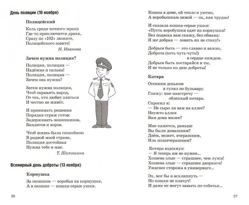 В книгу вошли стихотворения для детей 6-8 лет о праздниках, отмечаемых в России и в других странах. Они помогут воспитать доброту, сформировать чувство справедливости, правильное отношение к родителям, старшим, друзьям, братьям нашим меньшим, окружающей природе. Материал книги может быть использован в групповой и индивидуальной работе с детьми. Книга адресована воспитателям, учителям начальной школы, гувернёрам и родителям. |