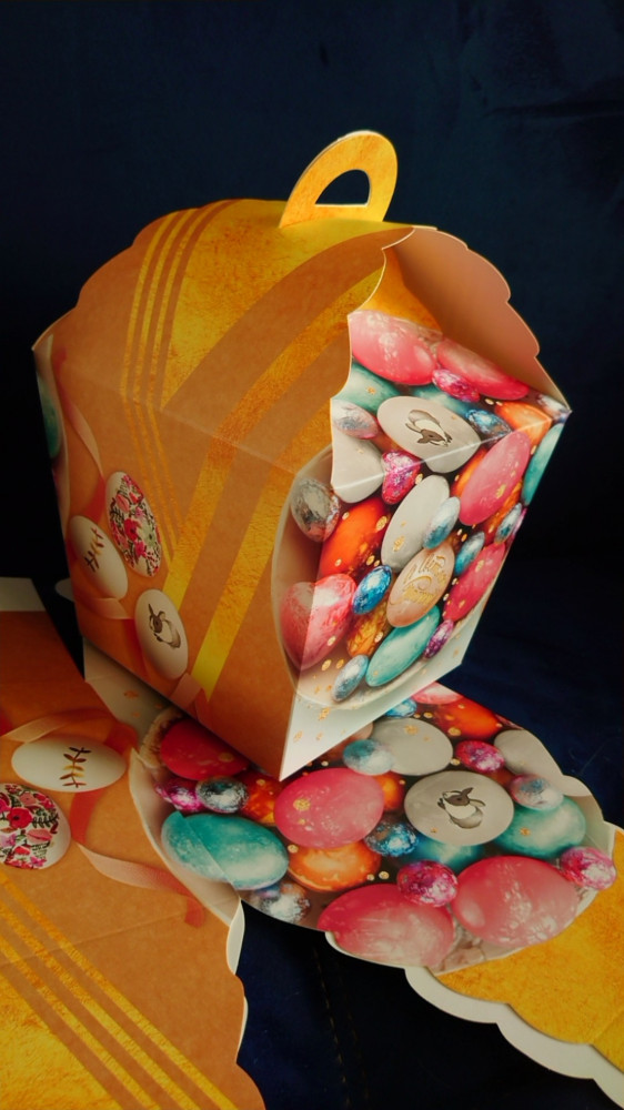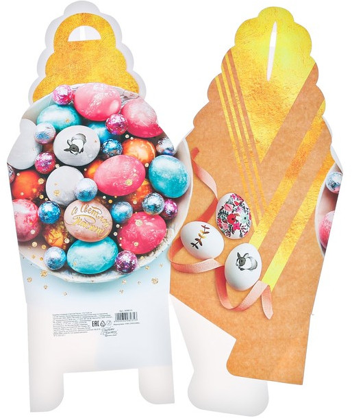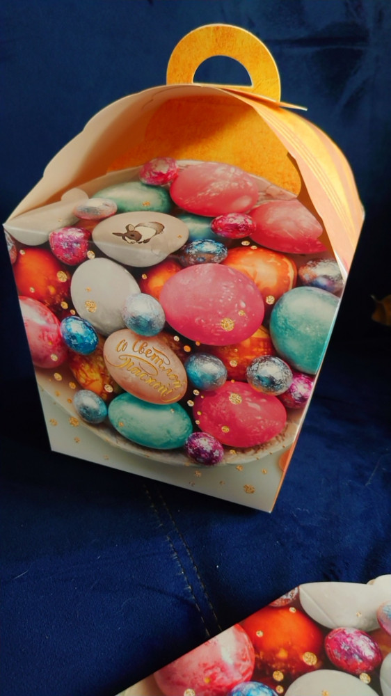 Классная коробочка, рисунок яркий, картон плотный. Очень большая, помимо кулича можно положить и конфеты и яйца. Не думала что она будет настолько вместительная. Очень довольна.