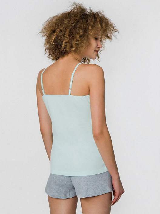 Верх пижамы отвратительны: лямки спадывают, грудь не держит. Как бесформенная тряпочка. Выбросила. Взяла вместо него женскую майку без рукавов. Шорты хорошие.