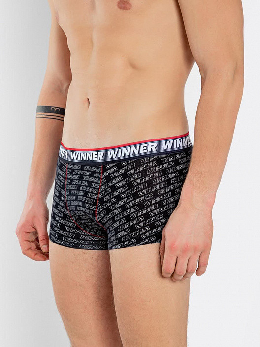 Трусы мужские из трикотажного полотна. Прилегающие. Без боковых швов с двумя передне-задними половинками. Планка и подкладка с вытачкой. Шаговый шов выполнен строчкой «флэт-лок». Швы притачивания планки выполнены на оверлоке с ширителем. По верхнему срезу настрочена фирменная жаккардовая эластичная тесьма. Боковые срезы тесьмы стачены строчкой флэт-лок. Нижние срезы трусов застрочены вподгиб.
